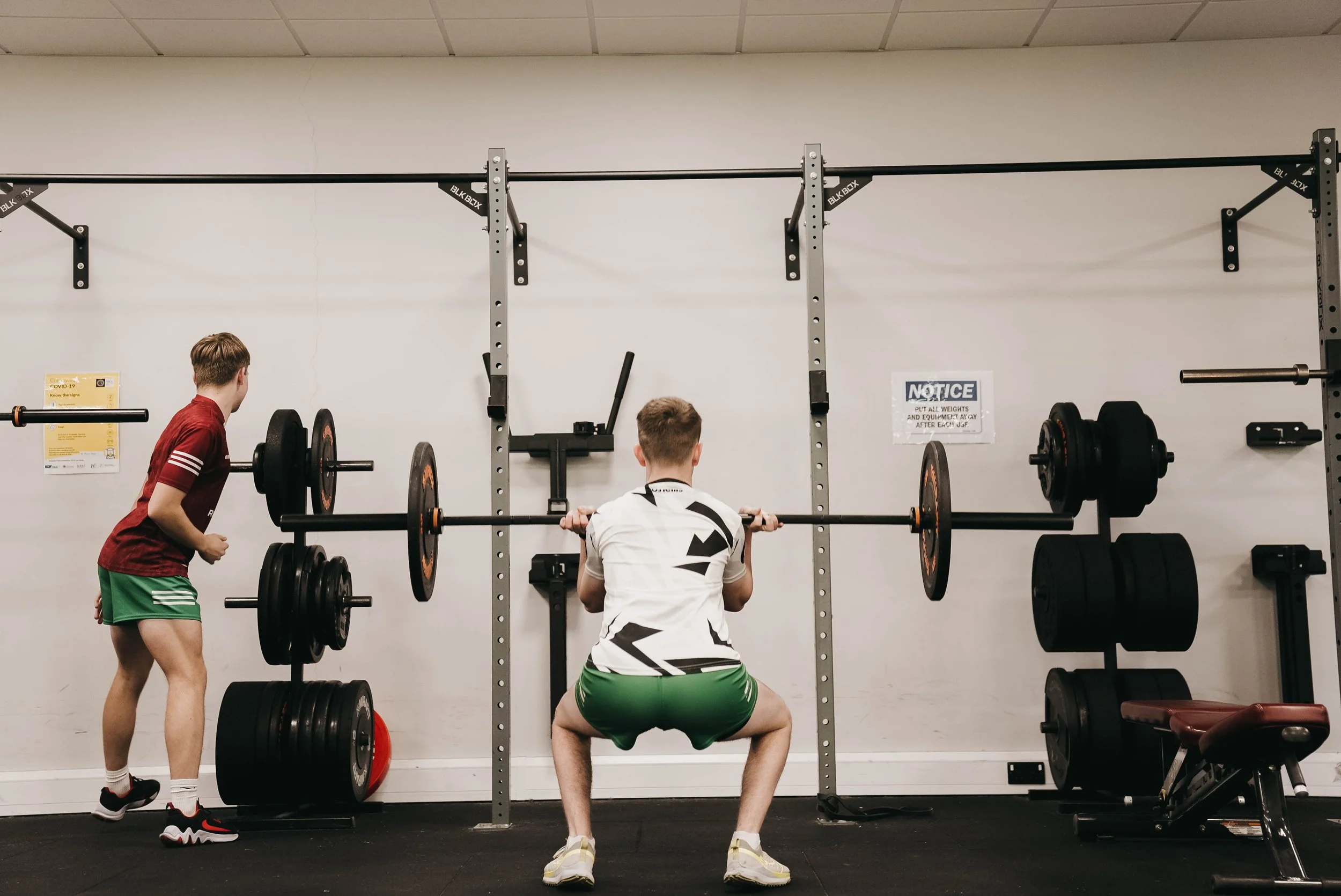 - Access to gym equipment (barbells, dumbbells, racks)